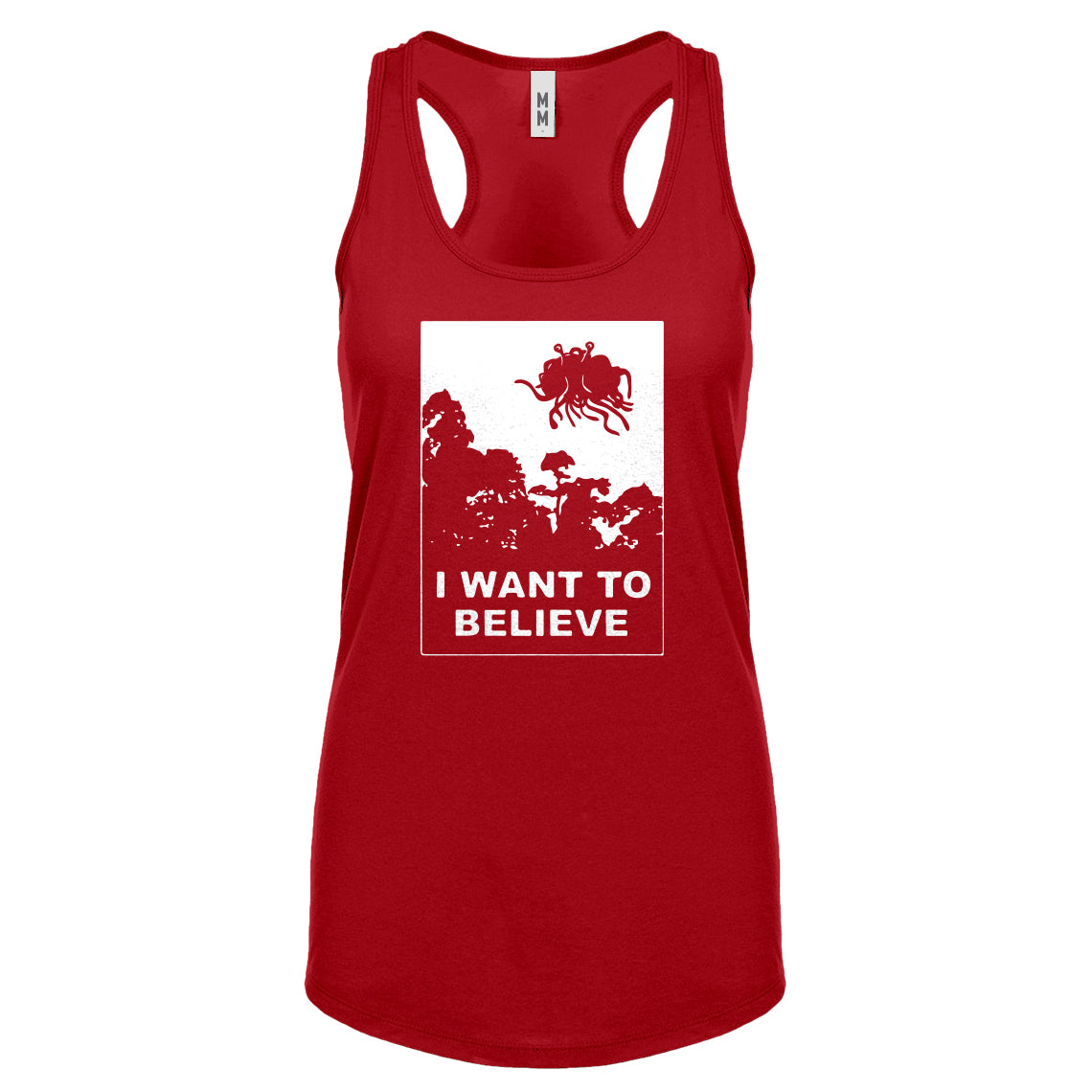 I Want to Believe Flying Spaghetti Monster Womens Racerback Tank Top
